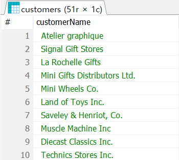 SELECT customerName