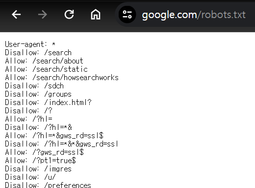 각 사이트별 크롤링을 허용하는 범위를 표시한 문서이다. 주소의 뒷부분에 '/robots.txt'를 넣어 확인할 수 있다.