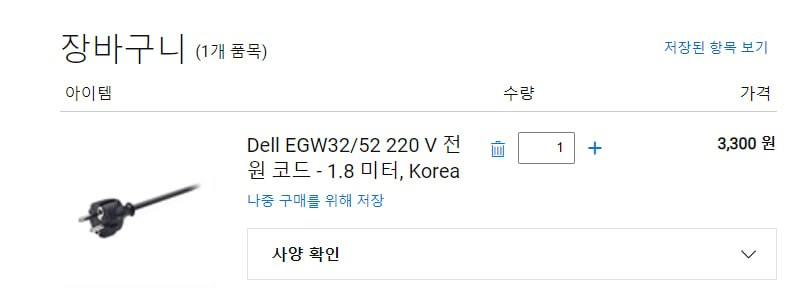 쿠팡 돼지코 가격은 2천원대부터 시작하여 다양했는데 너무 저렴한 것은 안전이 우려되었고, 그렇다고 비싼 걸 쓰자니 차라리 정품 전원 코드를 구매하는 게 나을 것이라는 판단에 이르렀다. 하지만 여기서 문제는 필자의 Dell XPS 13 모델이 출시된 지 꽤 지난 기종이라 해당 모델과 호환 가능한 전원 코드가 있을지 확인할 필요가 있었다. 그래서 바로 Dell 홈페이지를 뒤져봤다. 홈페이지에 3천원짜리 전원 코드가 있었는데 예상외로 저렴하여 바로 구매할까 하다가 혹시나 싶어 다음날 Dell 고객센터에 문의하여 한 번 더 살펴보기로 하였다.