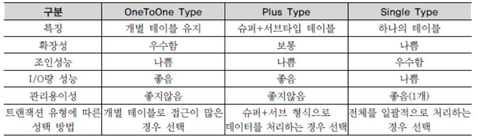 1. 슈퍼타입/서브타입 모델의 성능고려 방법