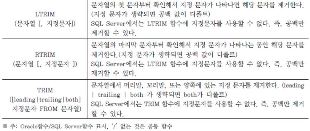- TRIM(문자): 문자의 양 끝 공백 제거.