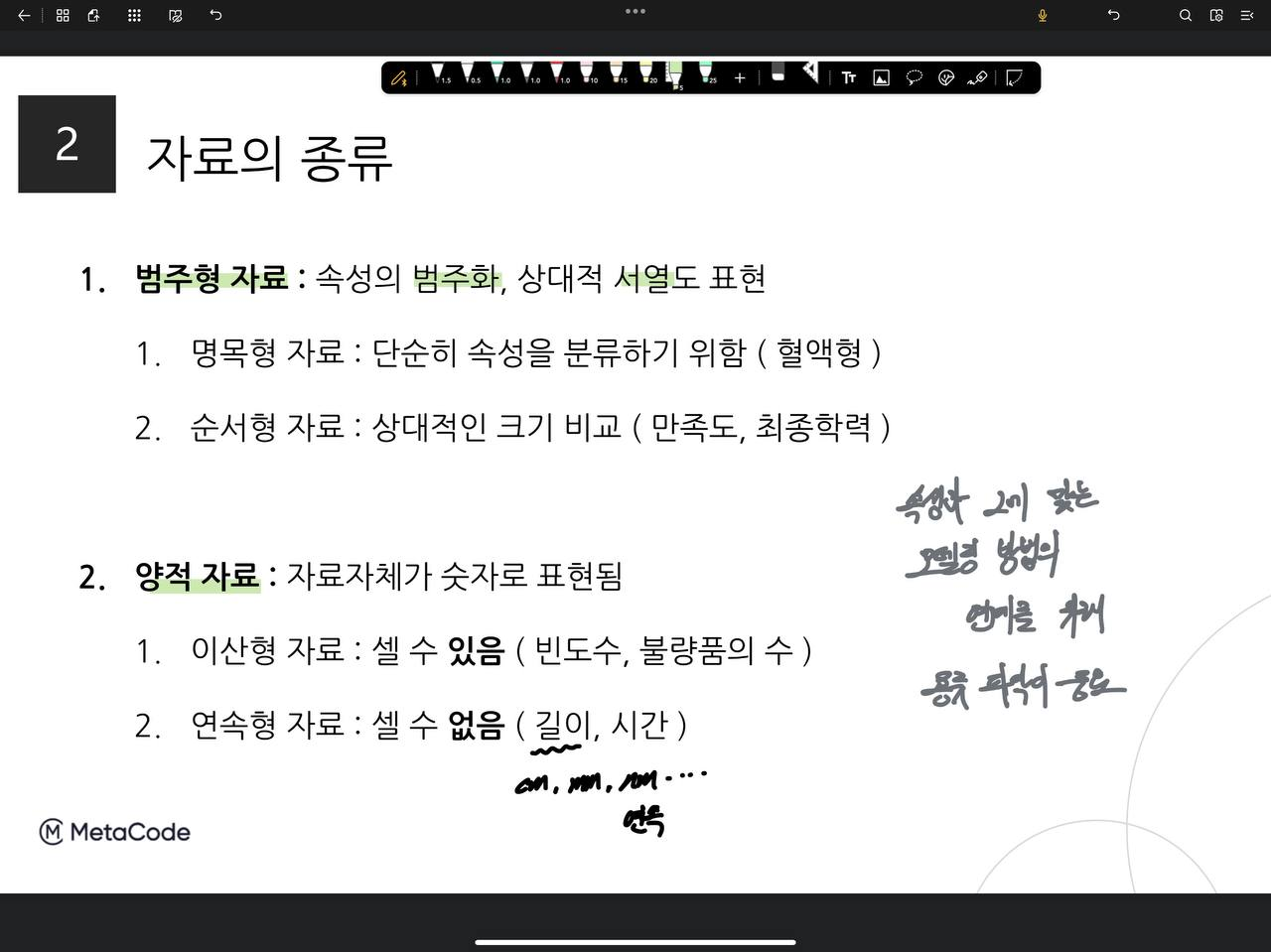 1강의 핵심은 데이터의 종류를 이해하는 것이다. 데이터의 속성에 따라 이를 처리하는 모델링 방법이 달라지기 때문에 올바른 분석을 위해 데이터의 종류를 확실히 판별하여야 한다. 아, 강의에 들어가기 앞서 자료를 꼭 받아두도록 하자.