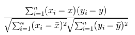 마지막으로 상관을 표현하는 통계량이 있는데 그중에서도 피어슨 상관계수는 아래의 공식으로 도출할 수 있다. 이것은 공분산을 두 변수의 표준편차의 곱으로 나눈 값이고 -1~1 사이의 값을 갖는다.
